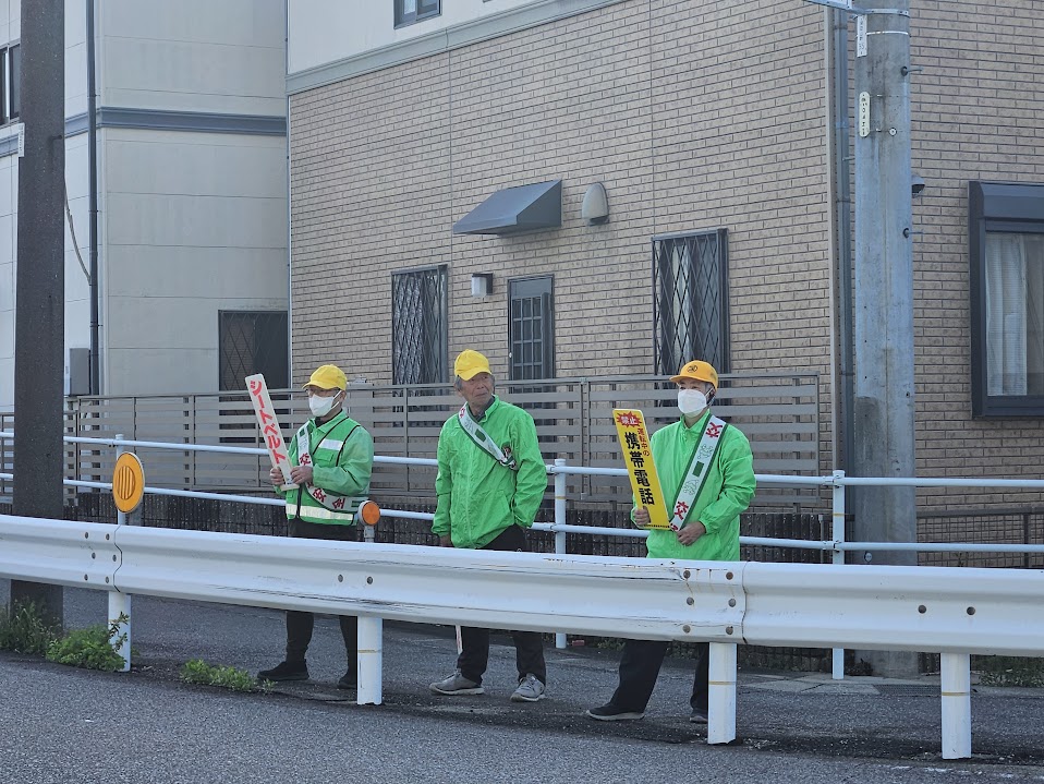 春の交通安全運動 April 9, 2025 4月7日(月) 「春の交通安全運動」が始まりました。7時から順に8時まで立哨されてみえるポイント7ヶ所を回ります。渋滞の中、どの道順で回ればいいかは、これまでの経験で決めてあります。冷たい風の中、早朝よるご苦労様でした。明日の入学式に合わせて、立哨活動される地区もあります。