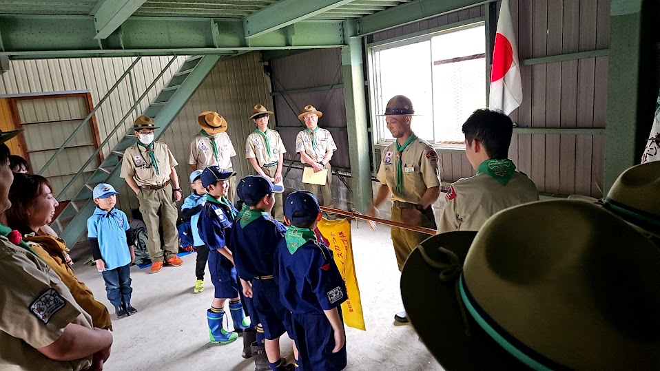 ボーイスカウト上進入隊式 April 14, 2025 ボーイスカウト豊田第2団の上進入隊式が行われ、第2団育成会長として参加しました。あいにくの雨☔で、会場を宮口神社境内から屋内に移しました。新入団員4名も加え新年度スタートです。現代社会で、AIやデジタルや仮想空間という言葉が飛び交う中で、直接顔を合わせて取り組んでいく、スカウト活動は大切だと感じました。