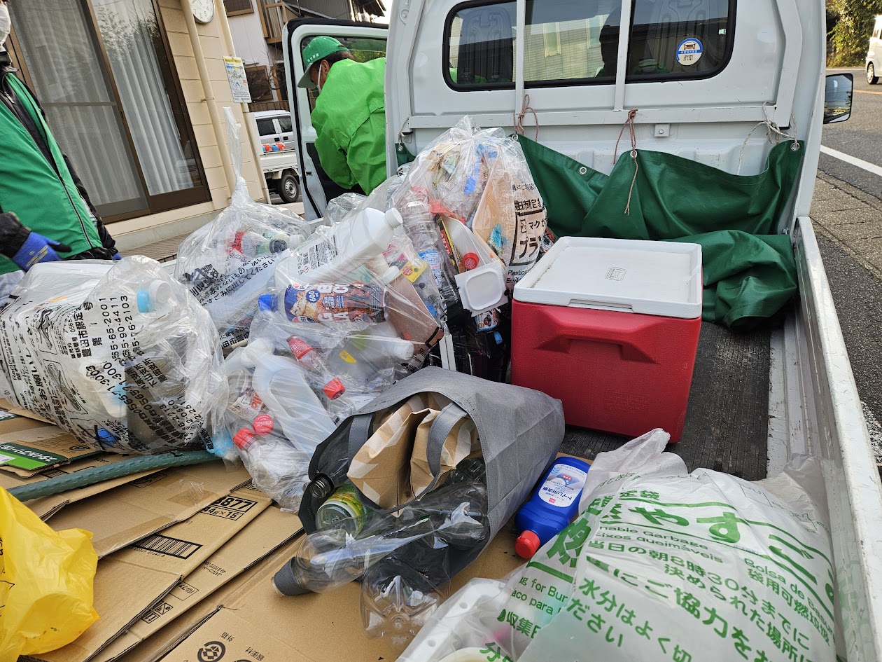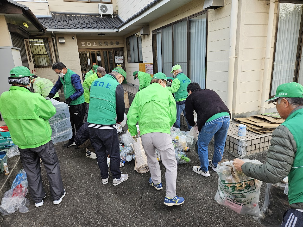 役員・ボランティアで、自治区内のゴミステーションのルール違反ゴミを回収し分別します。監視カメラ設置した効果や寒さの影響で軽トラ2台分と少なめでした。私もボランティアとして11年目の活動です。