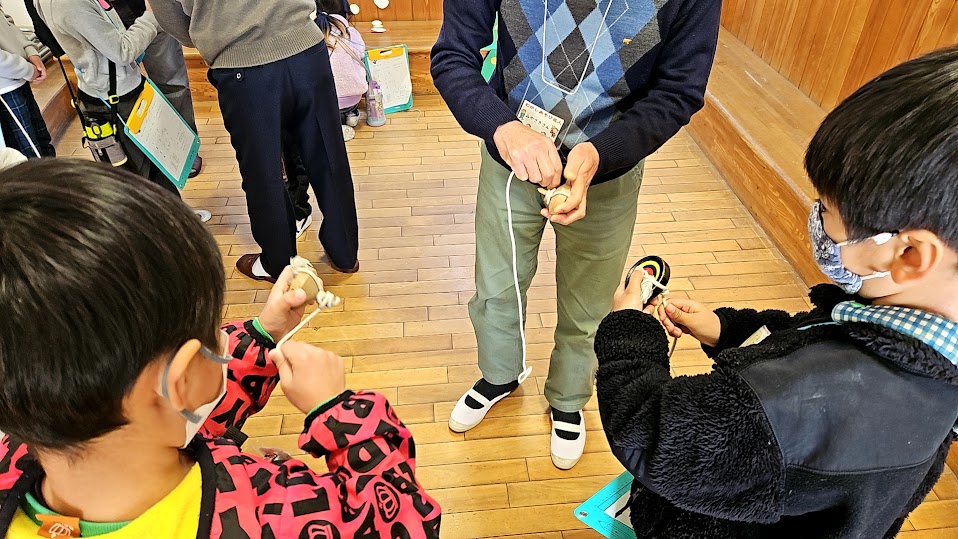 昔あそび体験授業 March 26, 2025March 27, 2025 1月9日(木) 美山小学校1年生恒例の「昔あそび体験授業」を見学しました。地域学校共働本部と学校が連携し、昔懐かしい遊びの体験を地域の高齢者を講師に招いて行っています。地域学校共働本部のコーディネーターさんが、講師募集などの準備+進行をしていただいています。活動が活発な地域学校共働本部の活動事例です。