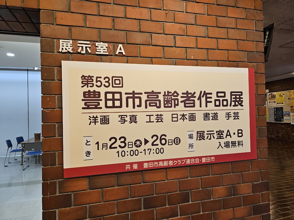 豊田市高齢者作品展 March 26, 2025March 27, 2025 1月23日(木) 今年も「豊田市高齢者作品展」が始まりました。洋画・写真・工芸・日本画・書道・手芸の力作が出品されました。特に手芸品は昨年より多く、皆さんの器用さに感心しました。