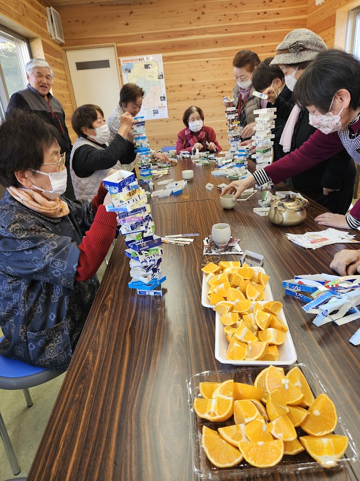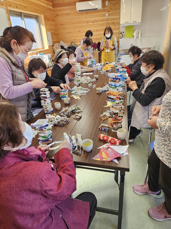 深田山自治区ふれあいサロン March 27, 2025 2月15日㈯ 毎月15日は「深田山自治区ふれあいサロン」開催日です。牛乳パック積木ゲーム、おこしもの作り、豚汁など、地区内3ヵ所それぞれが毎回工夫されてみえます