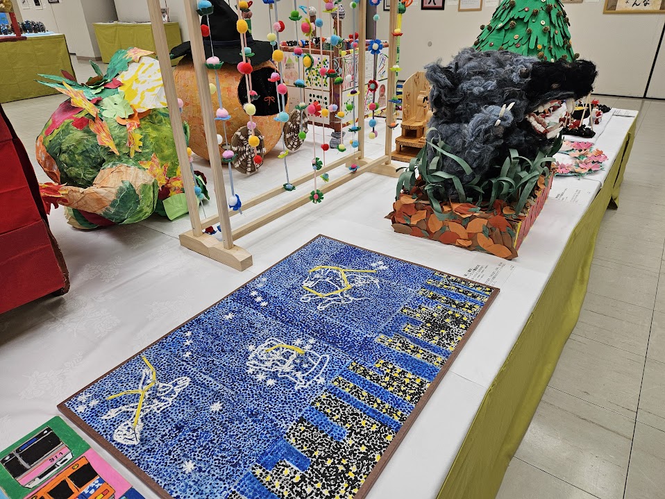 今年も障がい者作品展が始まりました。絵画に写真、工作、書など、力作が並びました。