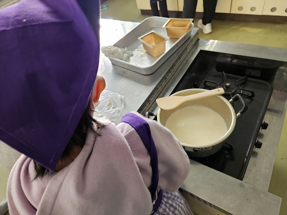 小清水小学校で豆腐作り授業が行われました。