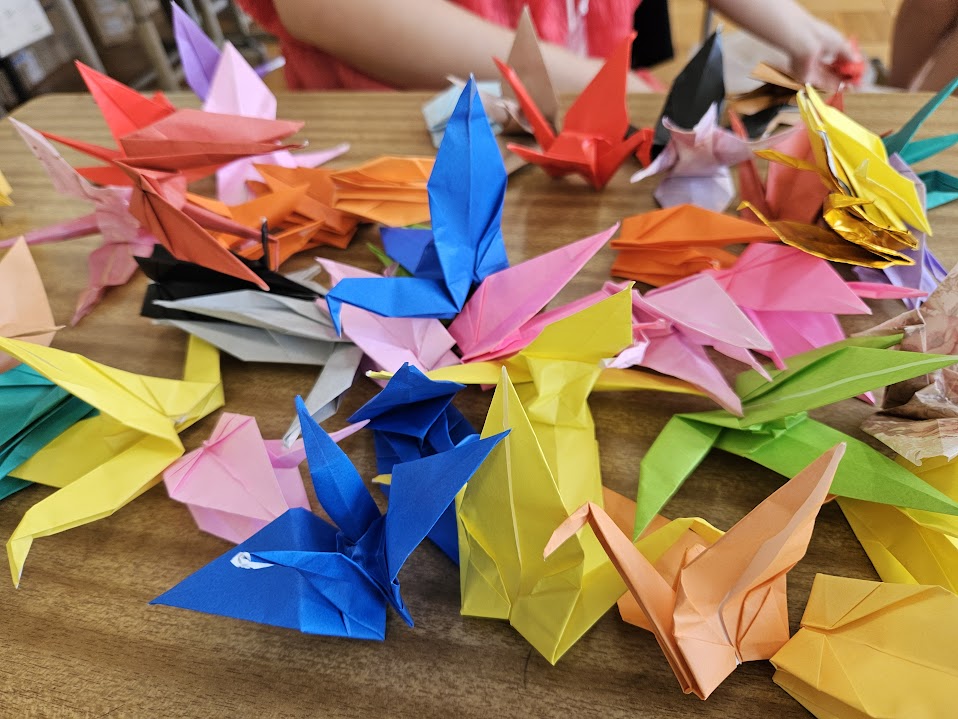 運動会に向けて、全校で応援鶴を折っています。